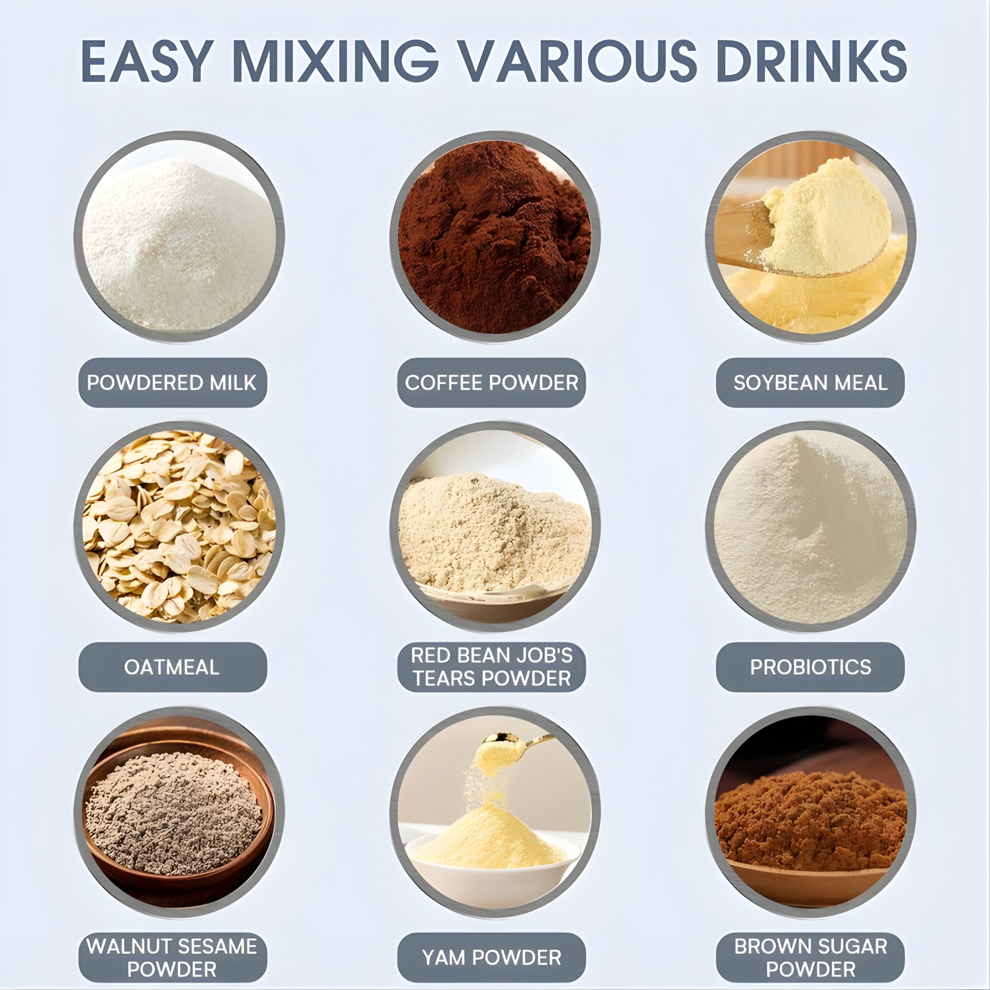 Yes! You can mix coffee, tea, cocoa, protein powder, milk-based drinks, and more. The upgraded capsule with a double-layer structure and steel ring ensures stable mixing even for thicker liquids. It’s perfect for daily beverages at home, the office, or on the go.
